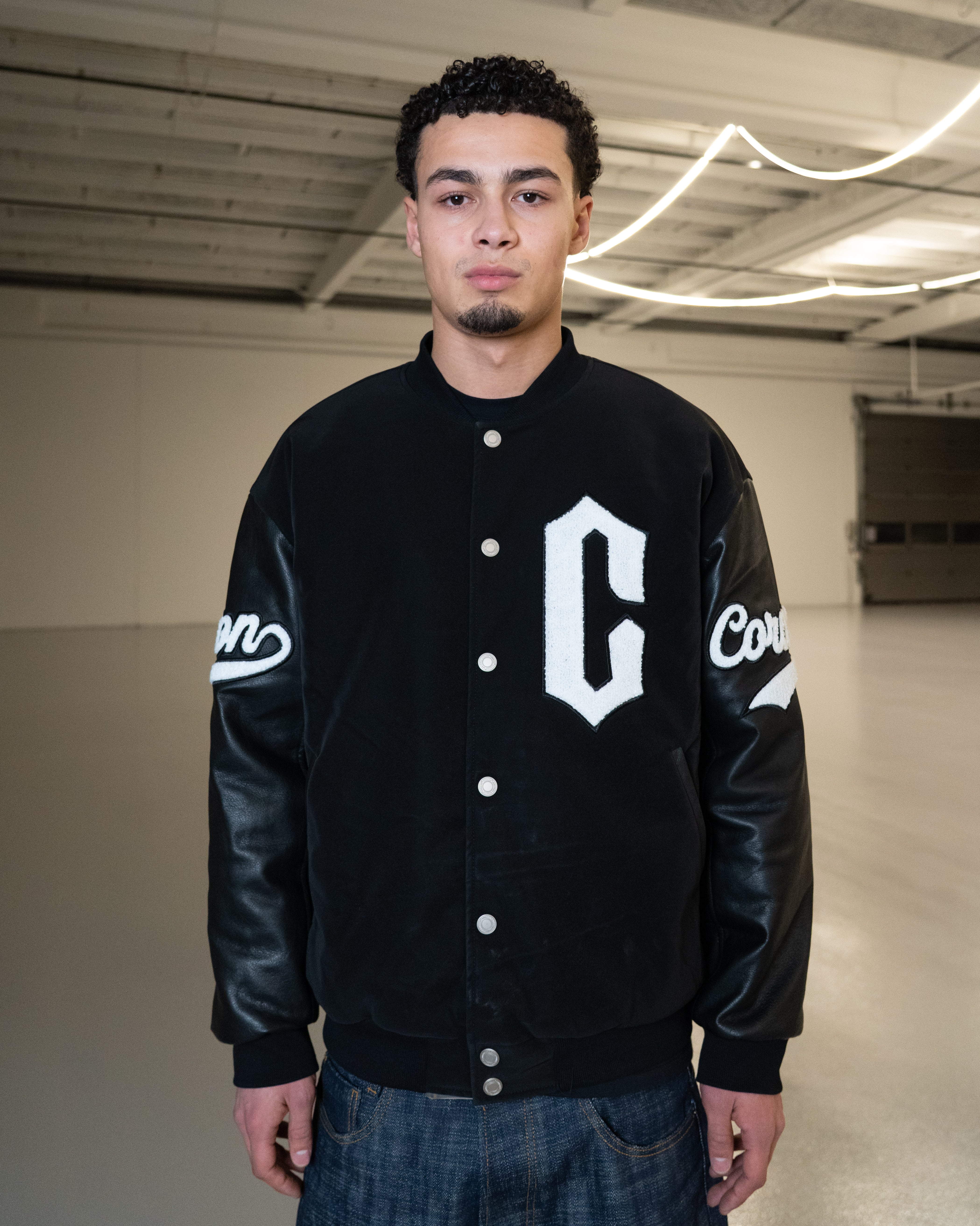 Icon Varsity Leather Jacket Black